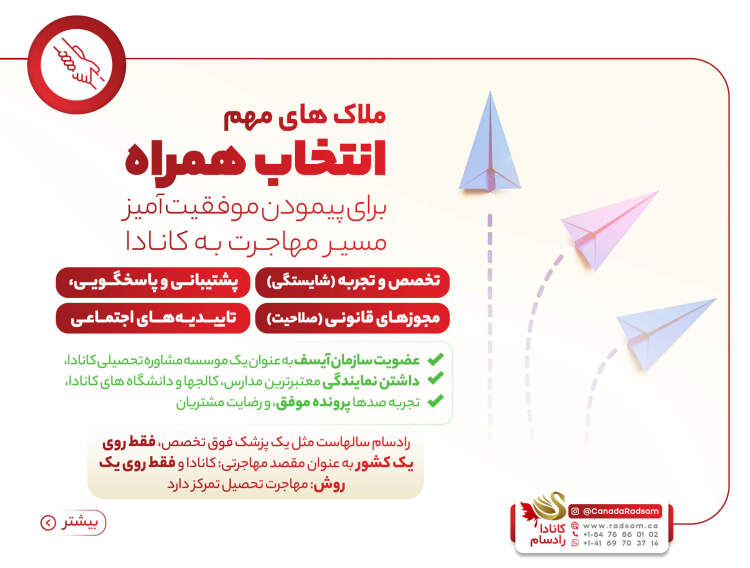 آشنایی با خدمات، مجوزهای قانونی، نمایندگیها و پروندههای موفق شرکت مهاجرت تحصیلی کانادا رادسام و دلایل انتخاب آن توسط دانشجویان متقاضی ادامه تحصیل در کانادا.