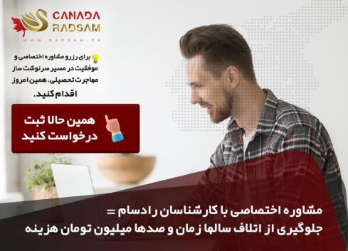 یک جلسه مشاوره اختصاصی سی دقیقهای با کارشناسان رادسام موجب سالها صرفهجویی در زمان و صدها میلیون تومان هزینه و موفقیت در تصمیم سرنوشت ساز مهاجرت تحصیلی به کانادا میشود. برای دریافت اطلاعات بیشتر لطفا روی بنر بالا کلیک کنید.